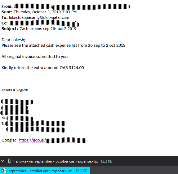 Рассуждая с позиции получателя, единственным и довольно заметным признаком того, что письмо отправлено от лица злоумышленника, является адрес отправителя, домен чаще всего не совпадает с названием фирмы, как и имя отправителя, не сильно похоже на имя в подписи, что чаще всего не характерно легитимным деловым письмам.