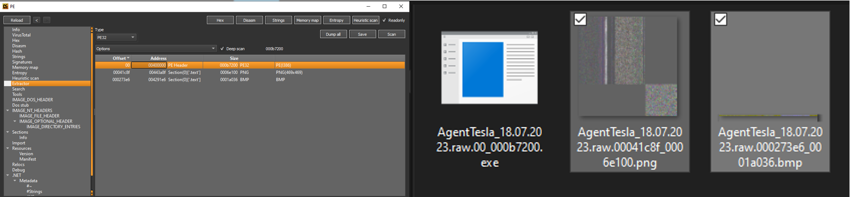 Среди ресурсов было найдено два изображения, PNG и BMP. Зловред их использует для распаковки подгружаемых DLL и EXE.