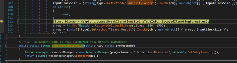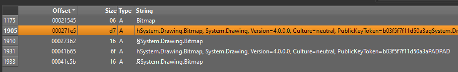 Также была найдена строка, с использованием C#-класса Bitmap, используемая для работы с полученными изображениями, извлечения DLL и EXE.