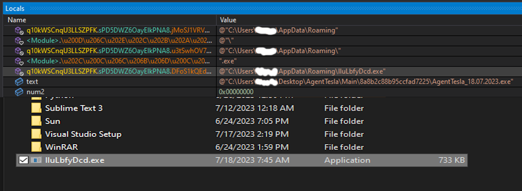Далее в папку Appdata/Roaming загружается тот же вредоносный .exe: