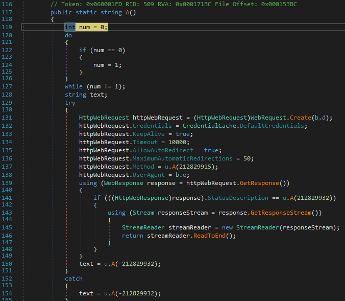 Далее выполняются обфусцированные методы, и возвращается массив размером 172 032 байта (165 Кб на диске):