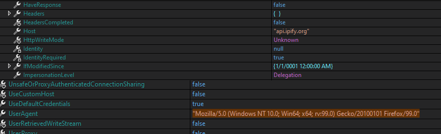 Для GET-запроса по HTTP на api.ipify.org используется класс HttpWebRequest: