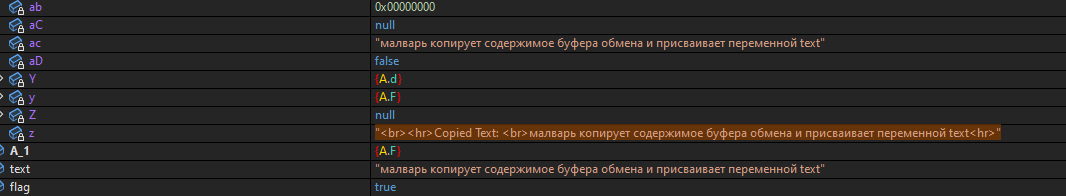 Рассмотрим работу бинарного файл CLI c оригинальным именем bddff1ee-8667-474d-b470-167aea1af3de.exe, выполняющего функции передачи данных пользователя. В процессе отладки, видно, как вредоносное ПО извлекает системную информацию: