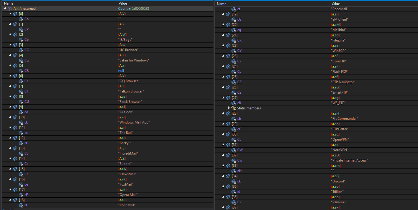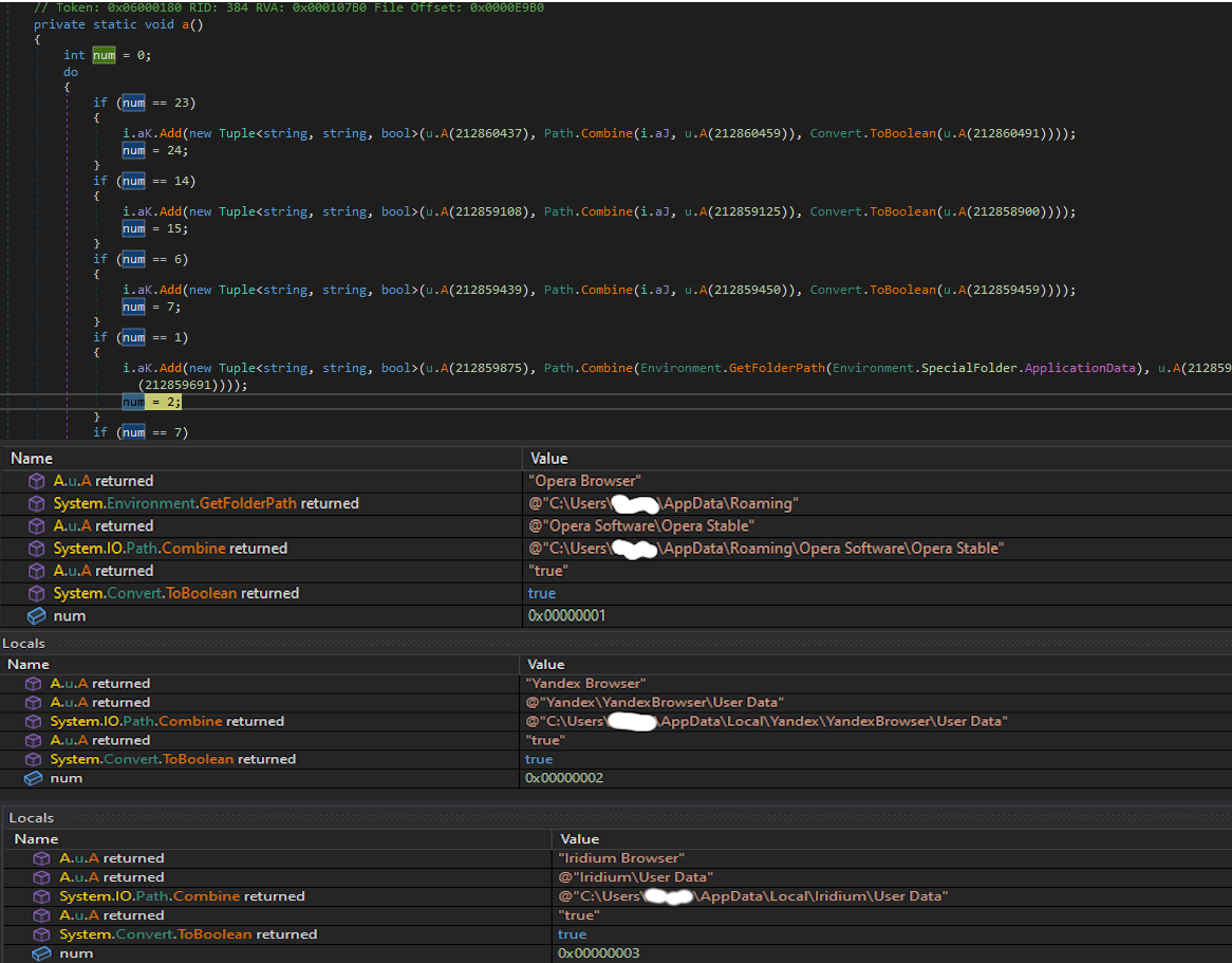 Далее формируется список дерикторий для проверки 29-ти источников на компьютере жертвы: