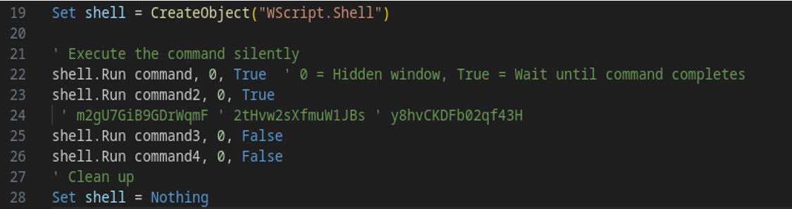 Последняя часть кода - создание Wscript.Shell, который выполняет все вышеописанные команды: