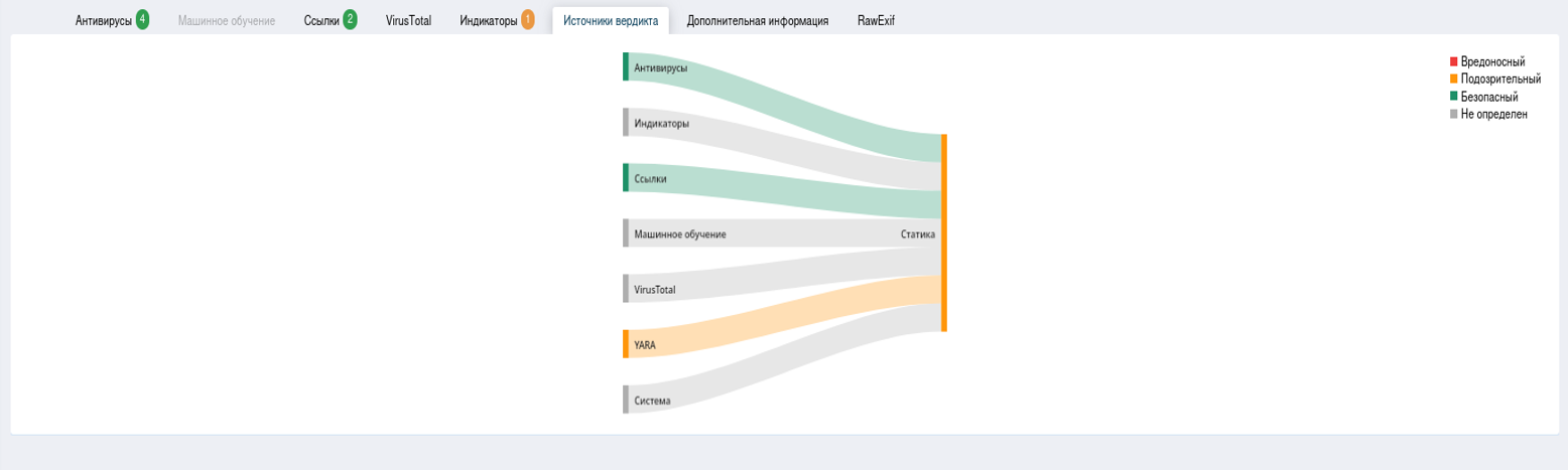 Вкладка «Источники вердикта» можно ознакомиться с основными резуль-татами статического анализа.