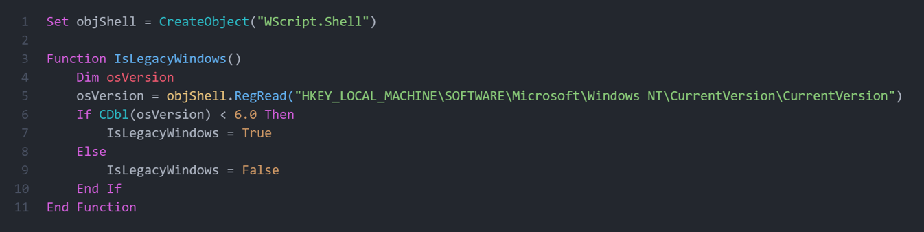 Скрипт создает функцию для определения версии ОС Windows: