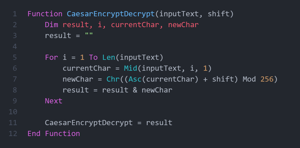 Функция сдвига Цезаря представлена на скриншоте:
