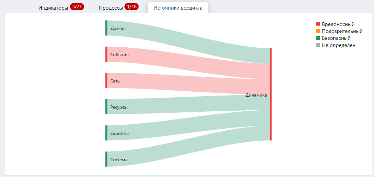 Все события, полученные дампы, созданные соединения объединяются в общий вердикт по динамическому исследованию:
