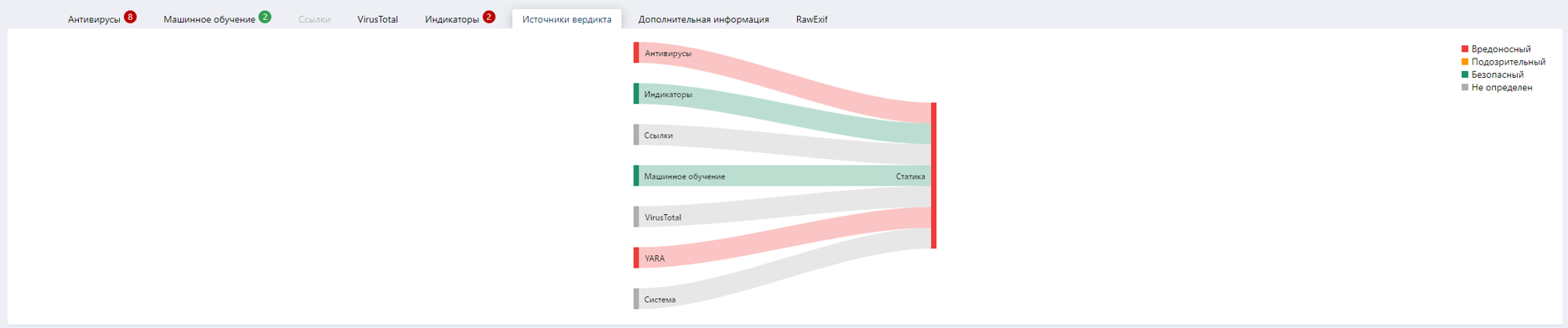 Во вкладке «Источники вердикта» можем ознакомиться, каким образом был сформирован вердикт для проверяемого файла.