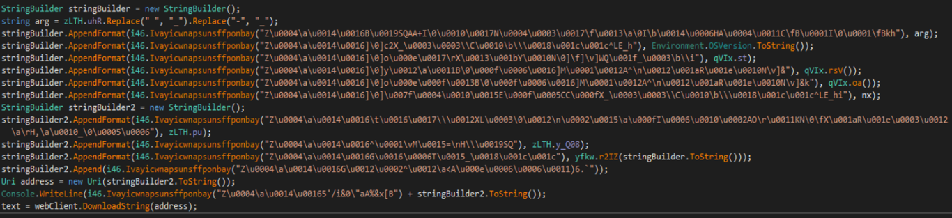 ВПО устанавливает TLS 1.2 версии и создает отладчик, собирающий все ошибки в файл логирования, который автоматически создается в системной директории «%TEMP%». У ВПО также имеются инструкции по созданию окна с сообщением, трех типов: информационное, предупреждение и ошибки.