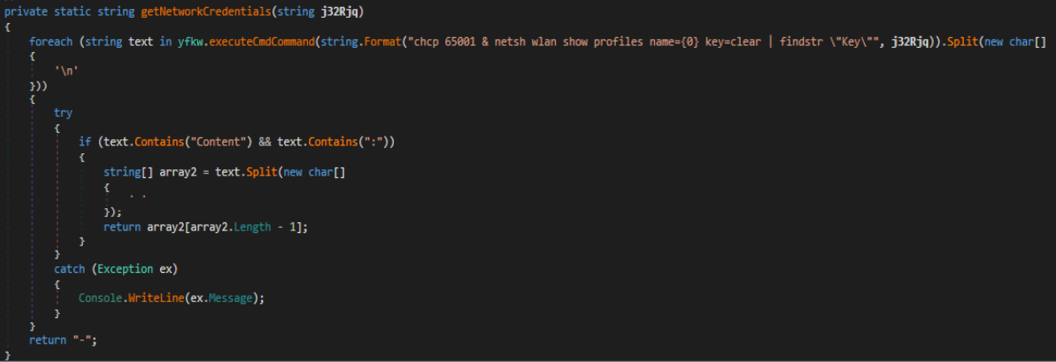 В том числе, ВПО собирает не только сетевые профили машины жертвы, а также доступные Wi-Fi сети поблизости, извлекаются данные о их именах (SSID), уникальных идентификаторах (BSSID) и уровне сигнала.