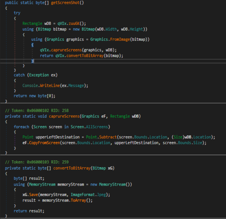 При получении команды «SCREENSHOT» ВПО создает снимок экранов с машины жертвы, полученный скриншот отправляется на сервер злоумышленника.