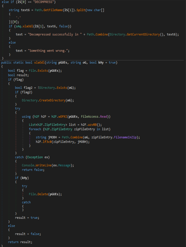 При получении команды «DECOMPRESS» выполняются инструкции по извлечению содержимого архива, с аналогичными проверками.