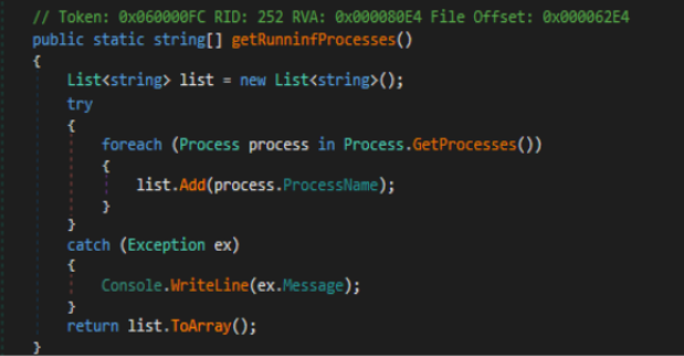 При получении команды «LIST_PROCESSES» собирается информация о запущенных процессах в реальном времени: