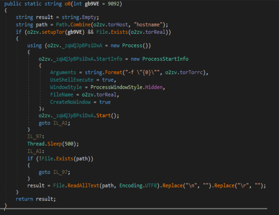 Также, возможна реализация разворачивания прокси-сервера посредством протокола TOR. Происходит аналогичная проверка на наличие TOR на машине жертвы: