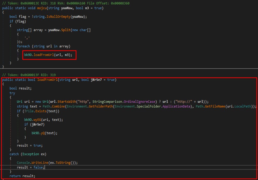 При получении команд «LOADEXEC» и «LOADER» выполняются инструкции по загрузке файла при помощи объекта URI, скачанный файл помещается в папке к текущему (запущенному) экземпляру ВПО.