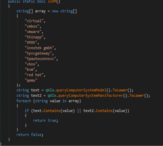 После чего, полученные значения сравниваются с массивом строк, содержащем в себе стандартные значения для виртуальных окружений: